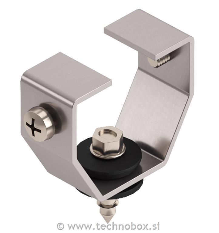 VZ NOSILEC 16 za VERTIKALNO ZAŠČITO izdelan iz nerjavečih materialov, primeren za pritjevanje na pločevinaste strehe in podobno.