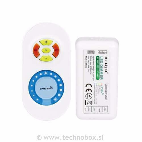 Mi-Light touch Daljinec in kontroler CCT se uporablja za CCT LED trak. Funkcija daljinca je upravljanje-izbira barvne temperature od toplo bele do hladno bele, ter možnost zatemnjevanja pri CCT LED trakovih.