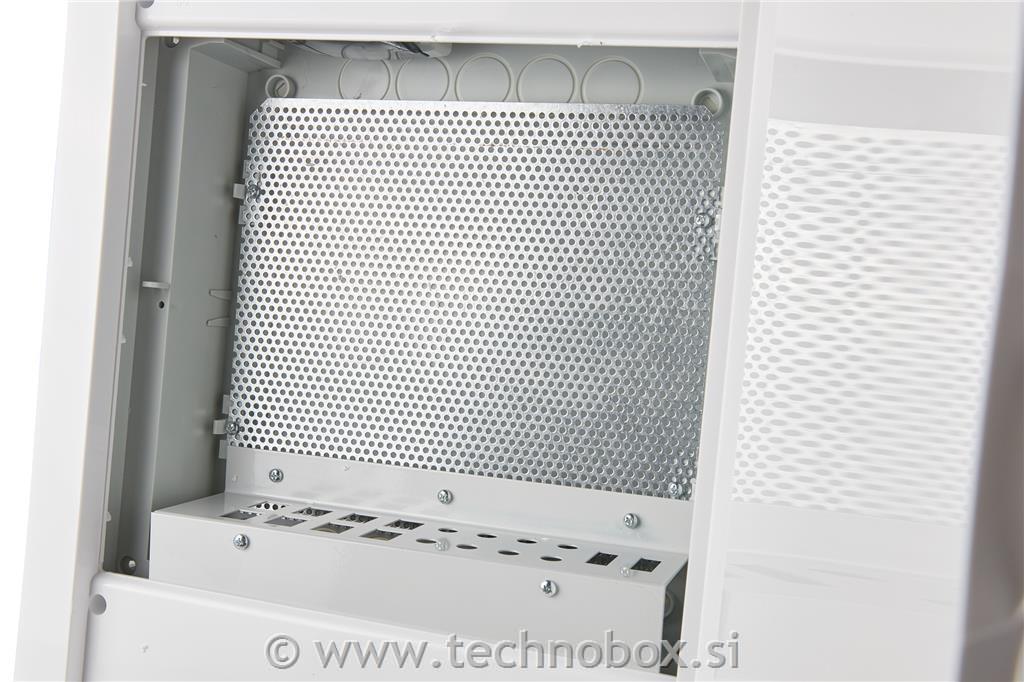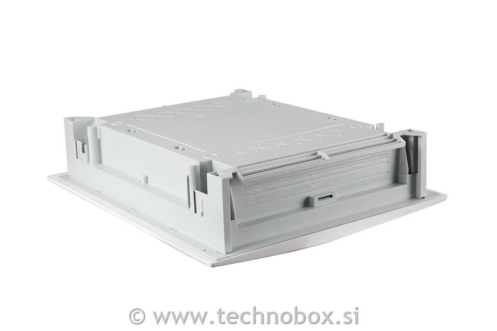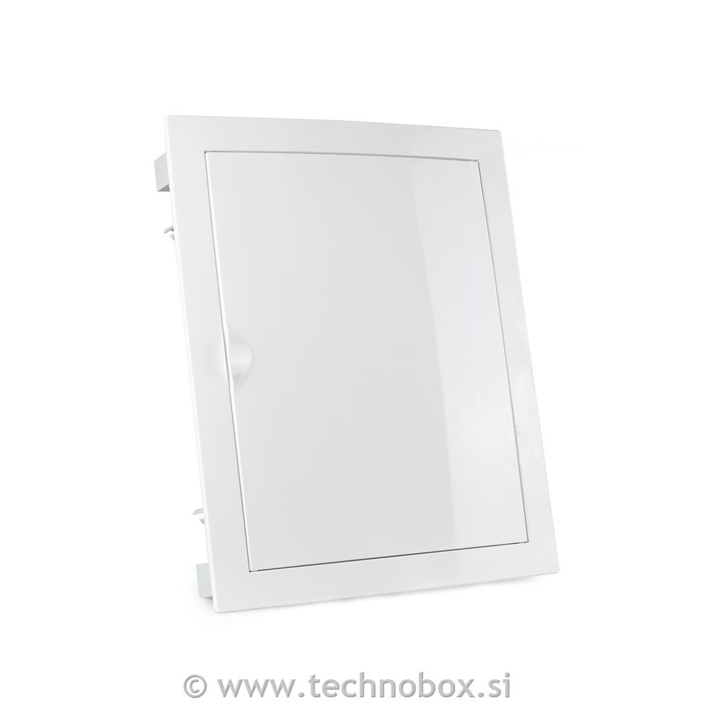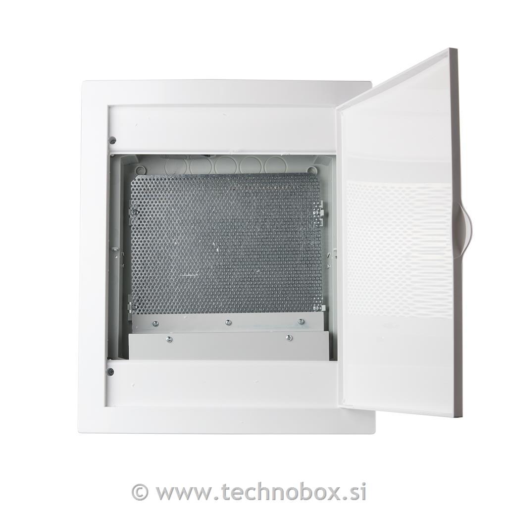Vgradna komunikacijska omarica z plastičnimi belimi vrati.