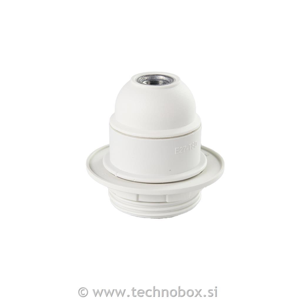 Okov E27 PVC bel, z matico in pritrdilom