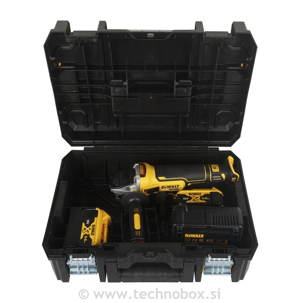 Vsebuje: 2x DCB184 5Ah 18 V bateriji in polnilec, TSTAK kovček