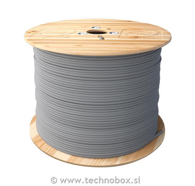 Kabel F / UTP kategorije 5E s 4 pari (100 Ohm), oklopljen z aluminijastim trakom, ognjevarna PVC ovojnica, testirana do 200 MHz.Primerna za ustvarjanje prenosnih kanalov razreda D.