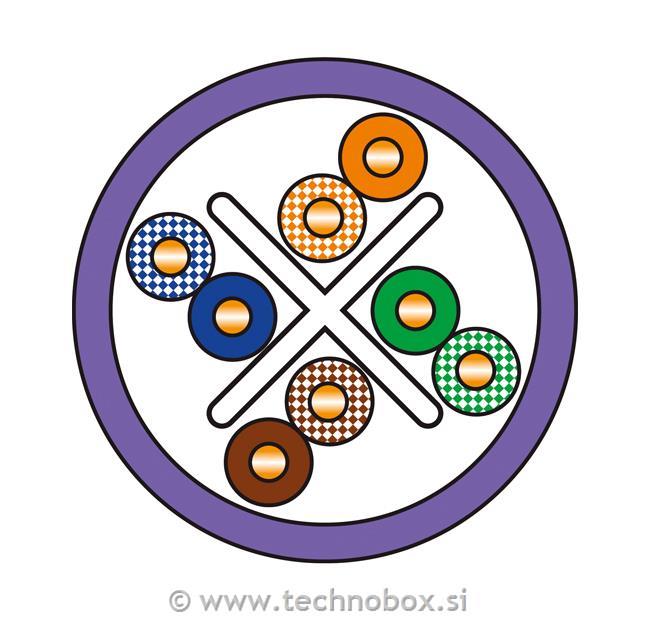 U / UTP kategorija 6A neoklopljeni 4-parni (100 Ohm) kabel s križnim ločevalnikom, LSZH (Low Smoke Zero Halogen) ognjevarni plašč, testiran do 500 MHz Idealno za izdelavo horizontalnih kablov tretje generacije razreda EA.
